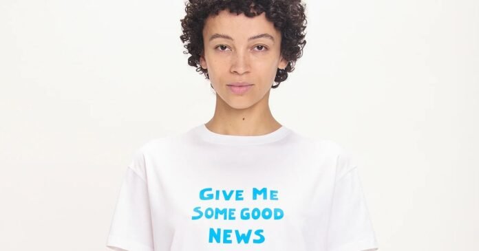 The campaign aims to assist women and girls in the UK who are encountering challenges and hardships by providing them with the necessary skills, opportunities, and support to create brighter and more secure futures. The T-shirt, bearing the message “Give me some good news,” is currently available for purchase at £95.