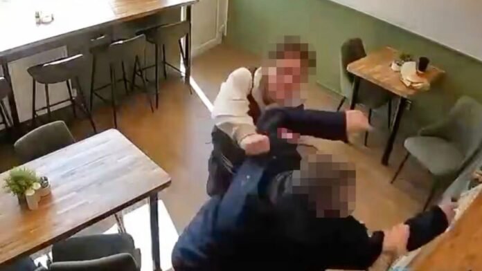 CCTV footage recently captured a disturbing incident where a customer was stabbed at a café located in Bolton.
