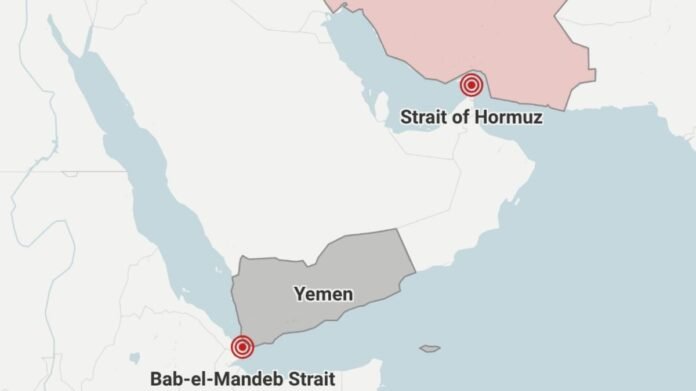 While negotiations for a peace deal are scheduled to resume in Islamabad, leaders from both sides are displaying strength. Iran holds control over the Hormuz strait and the Bab el-Mandeb Strait, the latter being an essential alternative route currently in use while the former remains closed. The Bab el-Mandeb Strait, located off the coast of Yemen, is under the influence of Iran-aligned Houthi rebels who have threatened to block the passage.