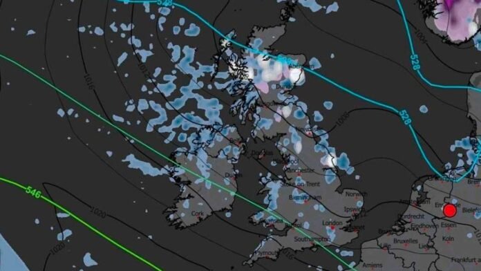 Weather maps are signaling a late surge of wintry weather that could bring snow to certain areas of the UK later in the month, as colder air moves in despite warmer spring temperatures elsewhere.