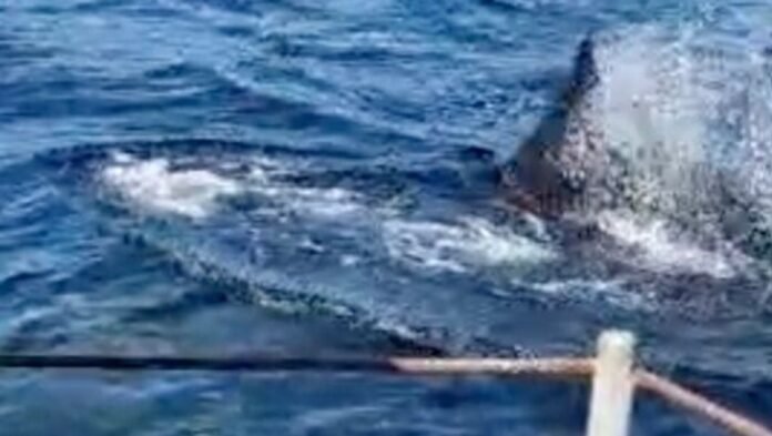 During a family charter trip, Skipper John Paul Baska from Northwest Charters witnessed the impressive shark, noting its size and the abundance of plankton attracting the sharks for feeding and fishing opportunities.