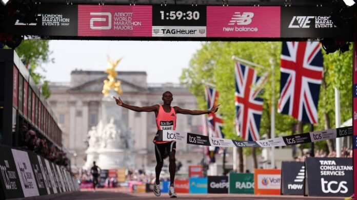 Sabastian Sawe has set a new world record in the marathon by finishing the London Marathon in 1:59:30, surpassing Kelvin Kiptum’s previous record of 2:00:35. Sawe’s victory marked his second consecutive win in the event and a significant improvement from his time of 2:02:27 last year. The intense competition in the elite men’s race came down to a close finish between Sawe and Yomif Kejelcha from Ethiopia.