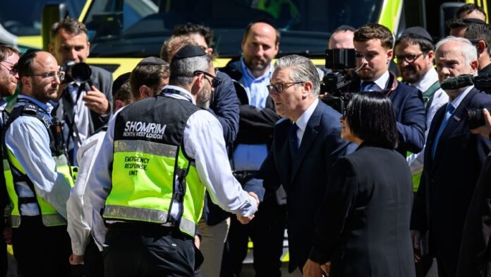 Tensions rose as Sir Keir Starmer arrived to meet with local Jewish leaders today, with a crowd of approximately 200 people surging forward and being restrained by numerous police officers. They gathered outside while the Prime Minister spent a longer-than-expected hour-and-a-half at the community center in Golders Green.