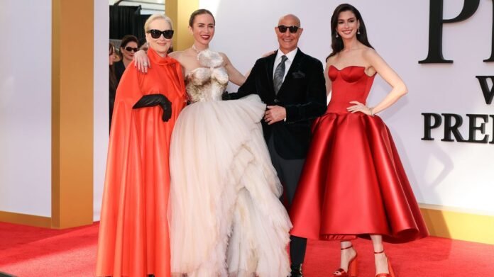 Last night in New York City, Anne Hathaway, Emily Blunt, Meryl Streep, and Stanley Tucci showcased stunning high-fashion outfits at the premiere of The Devil Wears Prada 2.