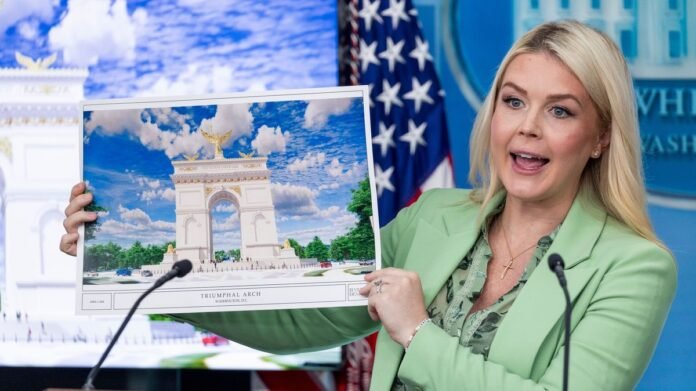 Leavitt stated, “President Trump and the Department of Interior will present plans for the United States Triumphal Arc, a magnificent architectural creation to commemorate our history here in Washington DC.” She emphasized that the 250-foot-tall arc would honor 250 years of American history and serve as an enduring source of inspiration for future generations.