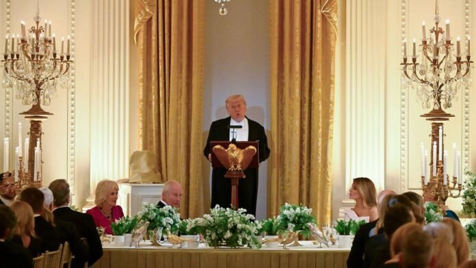 During a recent state dinner, both Trump and the King delivered speeches. Trump’s statement insinuated that the monarch supported his stance on Iran, stating, “We have effectively defeated that specific adversary militarily, and we will never allow them – Charles supports me even more than I do – to possess nuclear weapons.”