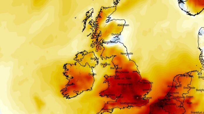 Weather forecasting maps indicate that temperatures are set to climb to 26C in certain areas of the UK in the coming days. Across England, Scotland, and Wales, up to 74 counties are expected to experience temperatures at or above 20C at the beginning of May. However, Northern Ireland is forecasted to reach only 19C.